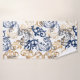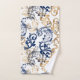 Elegant vintage vector pattern featuring flowing baroque-style floral scrolls in navy blue and gold on a clean white background, creating a classic, luxurious, and timeless ornamental design.