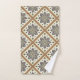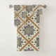 Este conjunto de toalhas de Banho frescas apresenta azulejos de medalhões multicoloridos dispostos diagonalmente. Eu sou rico em bronzeado dividindo e enquadra cada medalhão para criar um efeito de treliça. Esta design vem do azulejo feito à mão. Este é do dia do criador de Azulejos de Oregon, Fayjones.
