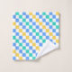 A colorful checkered pattern with alternating blue, green, and yellow squares on a white background. The design is vibrant and geometric, creating a playful tone.
