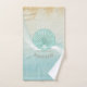 Esta toalha de banho colocada nas cores suaves do mar e da areia permite adicionar facilmente o seu próprio nome e texto utilizando o modelo fornecido. A simples imagem da concha de moluscos em um fundo angustiado e aquoso é realçada por um sotaque de onda em aqua e branco. Procure ID623 para ver a coordenação de elementos à beira-mar e produtos adicionais com este design.