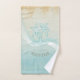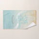 Esta toalha de banho colocada nas cores suaves do mar e da areia permite adicionar facilmente o seu próprio nome e texto utilizando o modelo fornecido. A simples imagem das palmeiras em um fundo angustiado, aquarela, é destacada por um sotaque de onda em aqua e branco. Se você não tem a sorte de ter uma casa de praia ou uma casa de campo, basta mudar o texto dessa design divertida para o que você precisar. Procure ID623 para ver a coordenação de elementos à beira-mar e produtos adicionais com este design.