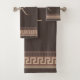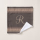 Design do ornamento da beira da chave do grego elegante, clássico do meandro com monograma e decoração geométrica das listras no fundo do marrom escuro. Grande ideia para aniversários, Natal do presente ou para surpreender apenas seu amado. É fácil personalizá-lo e mudar a cor do fundo para adicionar o diferente ao design com sua escolha.