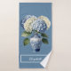 belo buquê de flores de hydrangea dispostas em um vaso em fundo azul. As hortênsias estão em tons de azul claro e branco cremoso, com pétalas delicadas que criam um cheio, em forma arredondada. O vaso é um clássico design, branco e azul, inspirado provavelmente pelos tradicionais estilos de porcelana ou cerâmica, com padrões intrincados e motivos florais que complementam as flores. Toda a cena tem uma qualidade macia, semelhante à aquarela, dando-lhe uma aparência gentil e elegante. As folhas verdes da hydrangea acrescentam um toque natural, melhorando a composição geral. DESIGN DE © Você pode personalizar com seu nome e todos os textos. Você pode alterar a cor do texto e o estilo da fonte usando a opção personalizá-lo. NOTA: as cores exibidas on-line podem variar ligeiramente do produto real.