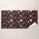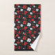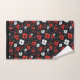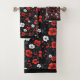Lindas rosas florais vermelhas e brancas em conjunto de toalhas de banho de fundo preto.
