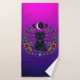 Black Cat Celestial Mystical Bath Towel Set features an enchanting black cat surrounded by moon phases, stars, flowers, crystals, and magical botanical details on a vibrant purple and pink background. This mystical fantasy design blends celestial, witchy, and gothic-inspired elements for a bold, colorful look that feels both dreamy and magical. A beautiful choice for black cat lovers, moon gazers, crystal lovers, and anyone drawn to mystical, spiritual, or celestial artwork.