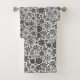 Bath Towel Set Of Three Sizes decorative bathroom amenity and home furnishing decor accessory printed with Black And Gray On White Retro Floral Art Seamless Pattern original hand drawn graphic design artwork illustration by TheFabricSeal print on demand shop at Zazzle.com #ZazzleMade ©️Original. https://www.zazzle.com/store/thefabricseal