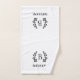 Toalha de banho com estampas pretas e brancas, definida personalizada com o monograma da sua família ou outro texto num galho de louros rústicos. Use as ferramentas de design para escolher qualquer cor de fundo, editar as fontes de texto e as cores ou carregar suas próprias fotos para criar uma de design. O toque perfeito para o seu decorador moderno de casa de fazenda!