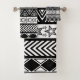 Bath towel set, consisting of a face cloth, hand towel and bath towel with a tribal design. You can customise this bath towel set with any text of your choice. Should you require any help with customising then contact us through the message link on this page. Tribal design bathroom towel set