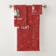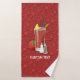 Um copo de coquetel Bloody Mary sobre fundo vermelho escuro sem costura. Texto personalizado.