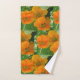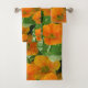 Este conjunto de toalhas apresenta lindas flores laranja cor de nastúcio. Claro que aplaudo o dia de alguém!