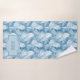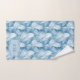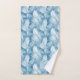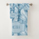 Beautiful blue and pale blue feathers cover these lovely bathroom towels with a monogrammed center.