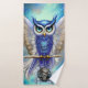 Coruja Steampunk Azul, esta design apresenta uma coruja azul com olhos azuis.