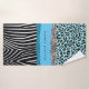 Este fantástico conjunto personalizado de toalhas é incrível para o fazer de que nada se perde na máquina de lavar roupa da faculdade porque é personalizado com o seu nome! Excelente para meninas que amam azuis ou meninos que querem um pouco de bling. Apresentando um design preto teal com brilho azul lacrimogêneo e impressão azul-leopardo.