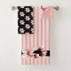 Toalha de banho chic feita em branco e preto, com listras e gráficos adoráveis de floração de magnólia colorida. Este adorável conjunto de toalhas de banho tem decoração caseira disponível.