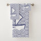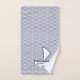 Uma toalha de banho com um barco em um padrão de onda japonês. Personalize as toalhas com seu nome ou seu próprio texto.
