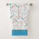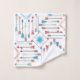 Este padrão de toalha de banho inspirado no asteca tem uma vibração chic Boho com um arranjo geométrico de setas aquáticas em torno de uma forma brilhante de sol. Esta versão colorida tem um esquema de cores mais tradicional do sudoeste que inclui turquesa brilhante e coral sobre a cor de fundo de sua escolha (o branco mostrado aqui é opcional). Procure ID748 para ver outras opções de cores e produtos com este padrão.