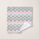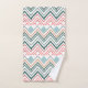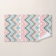 Este conjunto de toalhas tem um design de linhas, pontos e formas de diamante em azul-retrô, aqua, rosa e laranja.