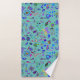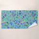 Este tapete colorido tem rabiscos de flores no estilo Boho com fundo aqua