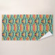 This towel set has a boho design of overlapping rainbows in boho colors of blue, green, yellow, and red.