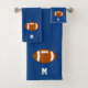 Bola de futebol americana e monograma no conjunto de toalhas de Banho Azul Real. Design para amantes de esporte!
