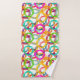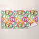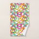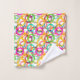 Este conjunto de toalhas tem um design geométrico de três círculos aninhados e espalhados pelo design em várias cores.