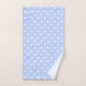 Conjunto de toalhas com padrão de bolinhas branca e azul bebê.
