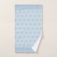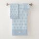 Pontos modernos e na moda, formando cruzes em um maravilhoso conjunto de toalhas monograma de fundo azul. Toalhas de decoração elegantes.
