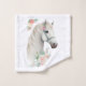 Toalha armada com uma ilustração mágica de uma bela cabeça de cavalo branca. Cercado por pequenas flores cor-de-rosa giras. Boho elegante para amantes de cavalos.