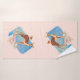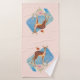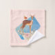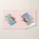 Toalhas com um veado castanho bonito com um dorso branco. Um passarinho sentado nas costas do veado. Um buquê floral rico com rosas de aquarelas e folhas verdes-oliva claras sob os pés dos veados. Um retângulo de aquarela azul atrás da imagem. Inocente e doce design com elegância rústica. Pêssego fundo colorido.