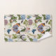 Uma toalha de banheiro encantadora para combinar com a cortina e o tapete do chá. Cheio de borboletas brilhantes e coloridas e flores antigas de hortas, samambaias e flores silvestres sobre um roteiro de efemérsia de escrita manual para um toque de vintagem! Concebido por artista e designer com licença internacional, Audrey Jeanne Roberts ©