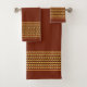 Linda castanha natural com padrão geométrico de tecelagem na borda. Amarelo, castanho de canela com realces de ouro. Tonalidades de terra quente tecidas na imagem de textura semelhante a um rato. Na moda e design de embelezamento único de cesto de tecelagem. Trendy home decor. Design original do Anura Design Studio.