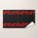 Um padrão único de Art-deco borda esta toalha de banho em vermelho e preto. Design por Alma Wad. Você pode personalizar este conjunto com seu nome pessoal ou comercial .monograma /logotipo. Seja criativo!
