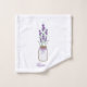 Elevem a sua rotina diária com a essência refrescante da natureza, à medida que os galhos de lavanda de ervas dão delicadamente a toalha de banho num fundo lilás. Incorpore a toalha da mão com um monograma, que tem um charmoso jarro de pedreiro enfeitado com fita e cheio de erva.