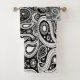 Montagem de toalhas de paisley preto e branco.