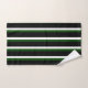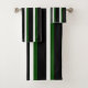 Conjunto de toalhas de banheiro vibrantes, preto, verde e listrado branco.