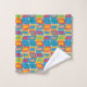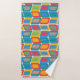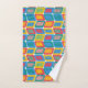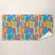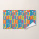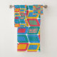 Este conjunto de toalhas tem uma design moderna do século médio de cores brilhantes que faz retângulos arredondados com outros retângulos dentro formados por uma coleção de linhas.