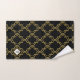 O elegante brilho preto e dourado parece azulejo marroquino, design de trellis com forma de diamante, emblemas dourados para o seu monograma inicial. Design por Holiday Hearts Design (direitos reservados).