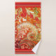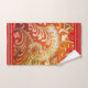 Conjunto Elegante de Toalhas que faz uma declaração ousada. Sombreado em vermelho brilhante, laranja, amarelo um efeito brocade rico.