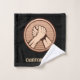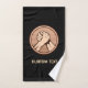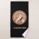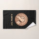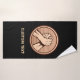 Medalha redonda de bronze com duas mãos em luta de braço. Cor de fundo personalizada. Texto personalizado em cada toalha.