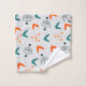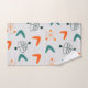 Este conjunto de toalhas tem um design atômico moderno do século médio de formas de bumerangue, antenas, e estereótipos em cor de laranja.