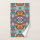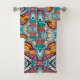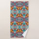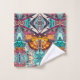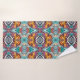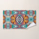 Toalha num batik digital de grandes borboletas num fundo de ornamentado, medalhão arabesco, em tons de âmbar, laranja, aqua e bege