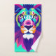 Cabeça Geométrica Colorida de Leão, esta design apresenta uma Cabeça Geométrica Colorida de Leão.