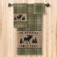 Um belo e rústico conjunto de toalhas de banho temático, com o nome da sua família e cabine, alojamento, cabana ou outro texto desejado e a sua data estabelecida. Este design exclusivo e personalizado apresenta uma silhueta de um alce e pinheiros em um impressão, no estilo burlap, acentuado com bela xadrez francesa em tons suaves de grama e verde-sábio. Para ver mais designs como esta, sinta-se à vontade para visitar a minha loja aqui em "Zazzle.com/Rustic_Charm". Obrigados.