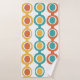 Este conjunto de toalhas tem um pano de lavagem turquesa, uma toalha de mão laranja, e uma toalha de banho com um design moderno do século médio, ligados juntos, fazer uma corrente com círculos brancos e coloridos dentro. Quer cores diferentes? Me mande mensagem.