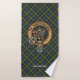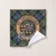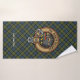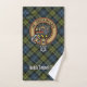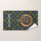 Crachá da crista Campbell rodeado por uma correia e fivela sobre fundo tartano. Texto personalizado em cada toalha.