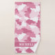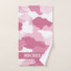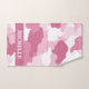 Decorre seu banheiro em estilo com essas toalhas de banho de camuflagem personalizadas. Este padrão de camo rosa tenso tem tons de rosa cor-de-rosa, poeirento e framboesa. Personalize com seu nome monograma em uma tipografia de estêncil rosa em framboesa. O presente perfeito para a família e amigos que amam camuflagem. Desenhado pela artista ©Susan Coffey.