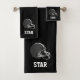 Capacete americano de futebol e texto editável em Black Bath Towel Set. Design para amantes de esporte!