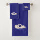 Casal do Cisne no Conjunto de Toalhas azul marinho. Ideal para todos.