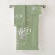 Na moda personalizado, design de monograma verde e branco moderno Sage com sobrenome de noiva e noiva e inicial. Design de toalhas verdes da Sage. Presente perfeito para recém-casados e casa juntos. Você pode personalizá-lo com sobrenomes, carta inicial e ano.
