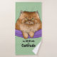 Um gato persa laranja num travesseiro roxo real mostra a sua atitude num pano de fundo verde